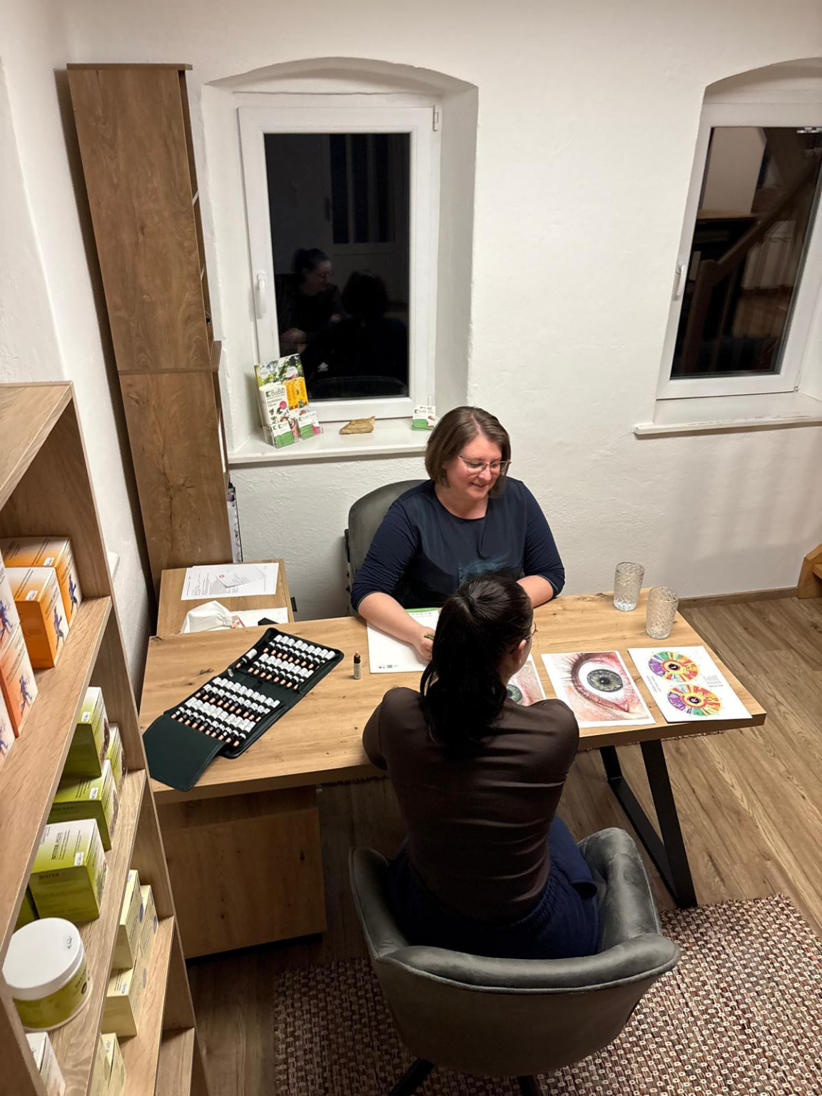 Zu Beginn Ihrer Iridologie-Sitzung nehmen Sie sich Zeit zum Ankommen. In der hellen, freundlichen Praxis, mitten in der Natur, dürfen Sie erst einmal durchatmen, ankommen und sich auf ein geschütztes Gespräch einstellen. Mir ist wichtig, dass Sie sich sicher und gesehen fühlen – ohne Druck, ohne Bewertung.